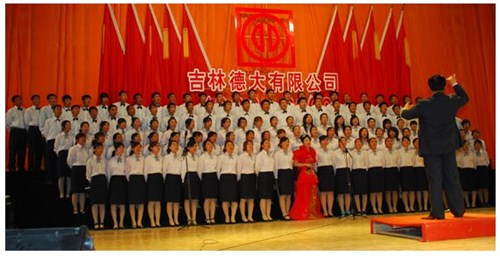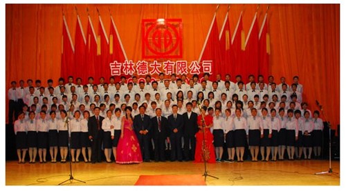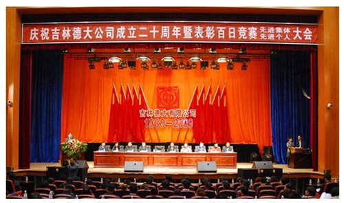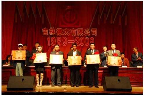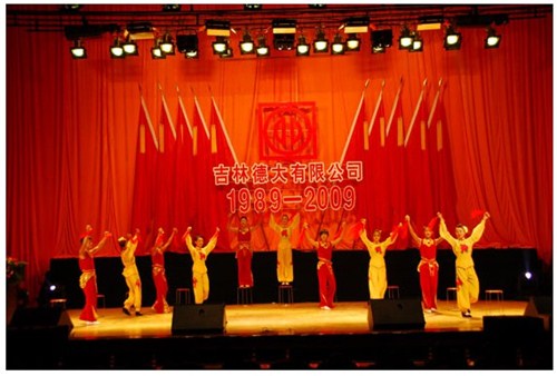 舉世同歡,六十載華夏慶盛世太平, 載歌載舞,二十年德大賀巨龍騰飛。 金秋九月,碩果飄香。在這收獲的季節(jié),我們迎來了偉大祖國六十周年慶典,同時也迎來了吉林德大有限公司成立二十周年華誕,我們祝福偉大祖國繁榮富強,祝福德大公司事業(yè)蒸蒸日上。 二00九年九月二十八日,中共吉林德大有限公司黨委、工會、共青團委、婦委會在德惠市文化宮聯(lián)合舉辦“慶祝吉林德大有限公司成立二十周年暨表彰百日競賽先進集體、先進個人大會”。大會從下午一時開始,共進行了四個小時。大會由中共吉林德大有限公司黨委書記陳玉和主持。參會的公司領(lǐng)導(dǎo)有:于建平總裁、劉繼仲副總裁、唐彬副總裁、董事會殷淑蓮董事等,公司總部、各事業(yè)部主管及員工參會,參會總?cè)藬?shù)近800人。 大會共進行五項議程。 首先由于建平總裁發(fā)表重要講話,于總裁向全體員工表示衷心的感謝,感謝全體員工多年來為公司做出的巨大貢獻,同時向大家表示節(jié)日的祝賀,并回顧了公司發(fā)展的歷程,對公司今后的發(fā)展提出了新的要求和希望。 接下來公司黨委副書記劉忠臣宣讀了表彰決定,對在“振興德大、從我做起”百日競賽活動中涌現(xiàn)出的先進集體及先進個人進行表彰,由主席臺就坐的各位領(lǐng)導(dǎo)向獲獎的先進集體和先進個人頒獎。共評選出先進集體6個、先進個人98人,其中優(yōu)秀黨員15人,優(yōu)秀團員 9人,青年突擊手10人,巾幗標(biāo)兵22人,勞動模范21人,生產(chǎn)能手21人,由食品事業(yè)品管部高鳳紅代表先進集體和先進個人講話,她代表先進集體和個人表達了繼續(xù)努力,為公司發(fā)展做貢獻的決心。先進集體、先進個人的表彰起到了鼓舞士氣、振奮人心的作用,給廣大員工樹立了工作的典范和學(xué)習(xí)的榜樣。 頒獎儀式之后舉行了盛大的文藝演出,參加演出單位有種禽事業(yè)部、肉雞自養(yǎng)事業(yè)部、肉雞放養(yǎng)事業(yè)部、飼料事業(yè)部、食品事業(yè)部、總裁室、采購中心等。節(jié)目類型多樣,內(nèi)容豐富多彩,有獅子舞、男女聲二重唱、四句半、藏族舞蹈、獨唱、小品、坐唱、詩朗誦、音樂快板、京劇聯(lián)唱、配樂詩朗誦、大合唱、二人轉(zhuǎn)等。四位主持人更是風(fēng)采照人,剛一登臺就博得臺下熱烈的掌聲,被于總裁譽為“有專業(yè)水平”。演出的成功源自周密的組織和密切的配合,在公司工會的組織下,各部門密切合作,很多幕后人員付出了辛勤的汗水。尤其是來自一線的演職人員,為了這次演出,他們不怕苦、累,在繁忙的工作之余擠出時間排練節(jié)目,精彩的演出得到了公司領(lǐng)導(dǎo)和觀眾的贊譽。坐唱《德大春風(fēng)暖人間》取材于公司的真人實事,表現(xiàn)的是公司員工捐款挽救一位員工家屬的感人事跡。大合唱《我的祖國》、《團結(jié)就是力量》等紅色歌曲,唱出了德大人的激情,唱出了德大人的心聲。原創(chuàng)歌曲《贊美我德大,贊美我家鄉(xiāng)》更是唱出了德大員工對德大的熱愛和期望。整個大會氣氛熱烈,演員們的精彩演出不斷把大會推向高潮。 最后,全體演員高唱“歌唱祖國”,大會在歌聲中圓滿結(jié)束。